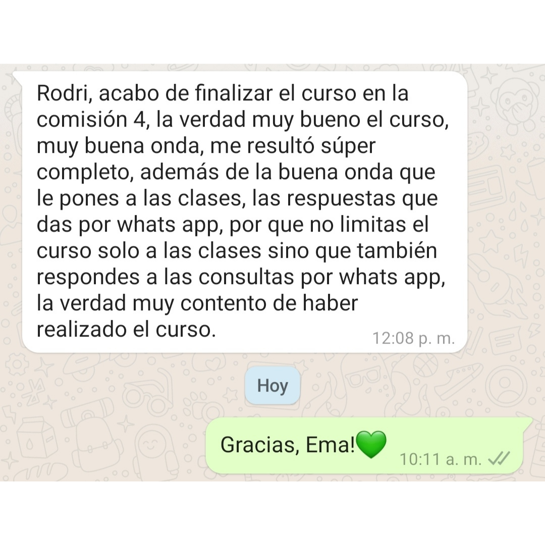 Acceso al grupo soporte de WhatsApp para compartir dudas, fotos y seguir aprendiendo entre todxs.