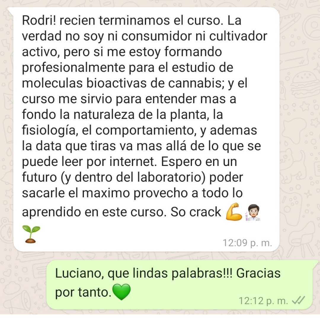 🌱Aprendé a ser Criador.🌱 ¿Te gustaría realizar fitomejoramiento en Cannabis?🌱🧬 Si querés hacer tus propias cruzas, no te lo podes perder!✅ Durante 4 horas y media de clase, el Ingeniero agrónomo Rodrigo Maltz y el Fitomejorador Pablo Cunto te explicarán los fundamentos teóricos y prácticos del mejoramiento genético. Comenzaremos con una introducción de los conceptos básicos de la genética, luego aprenderemos sobre el camino ya recorrido por otros genetistas y cultivadores en este cultivo y para terminar conoceremos más sobre la experiencia de Pablo con las plantas insensibles al fotoperíodo, más conocidas como "automáticas".